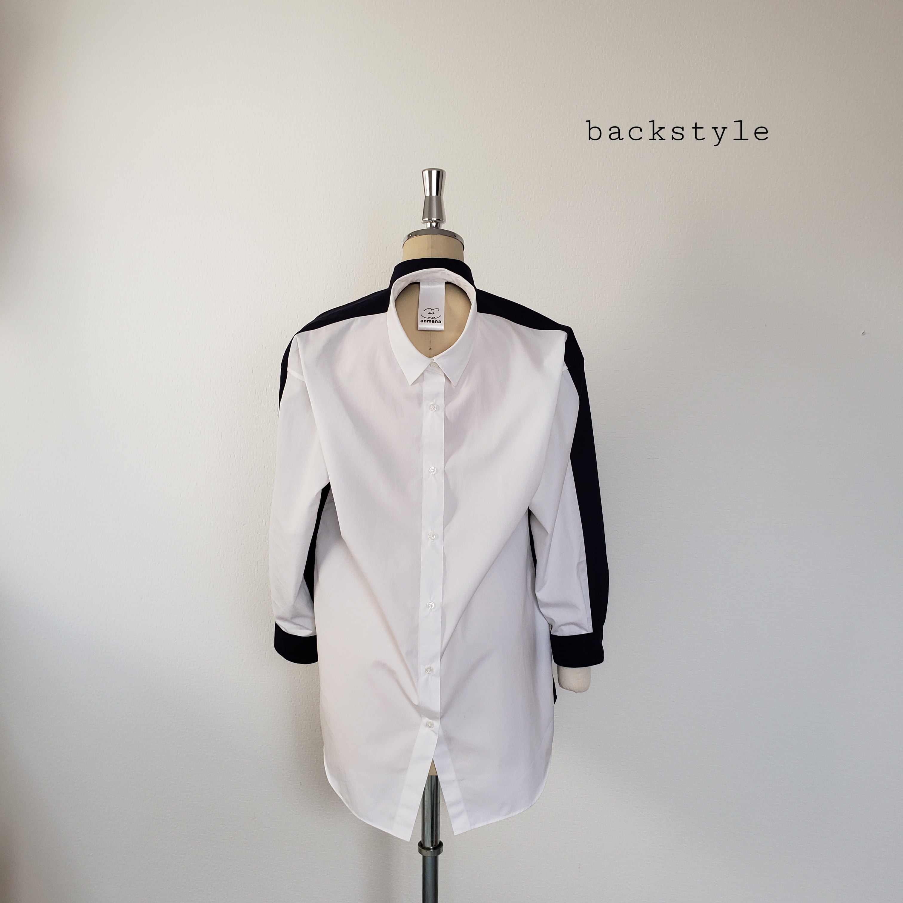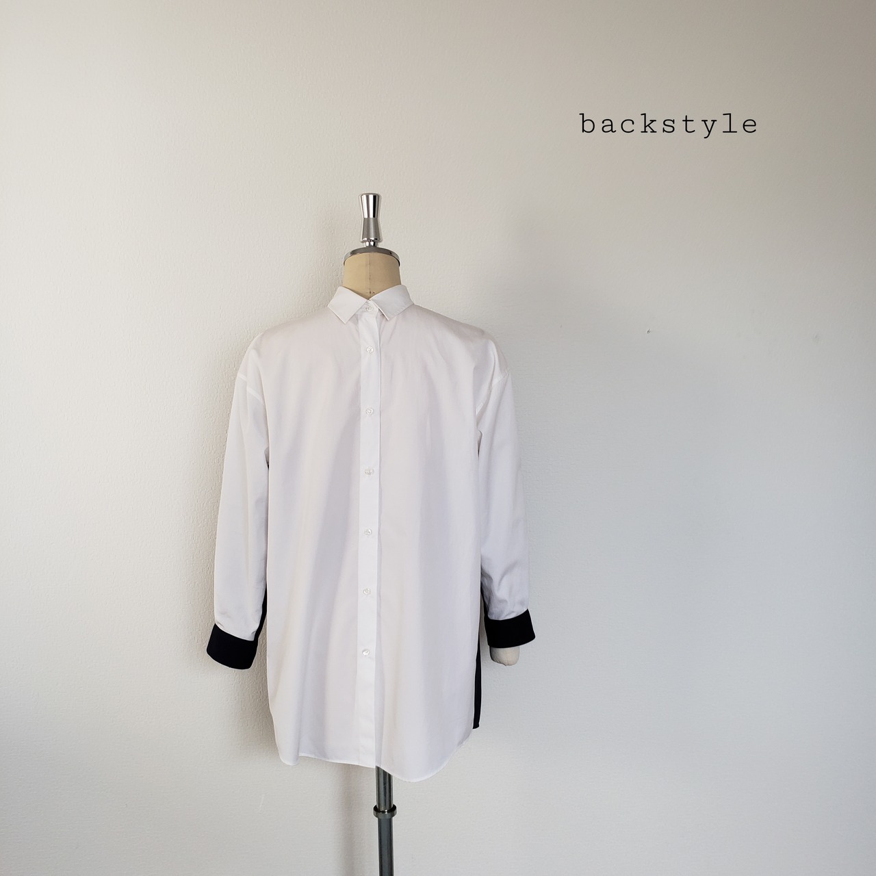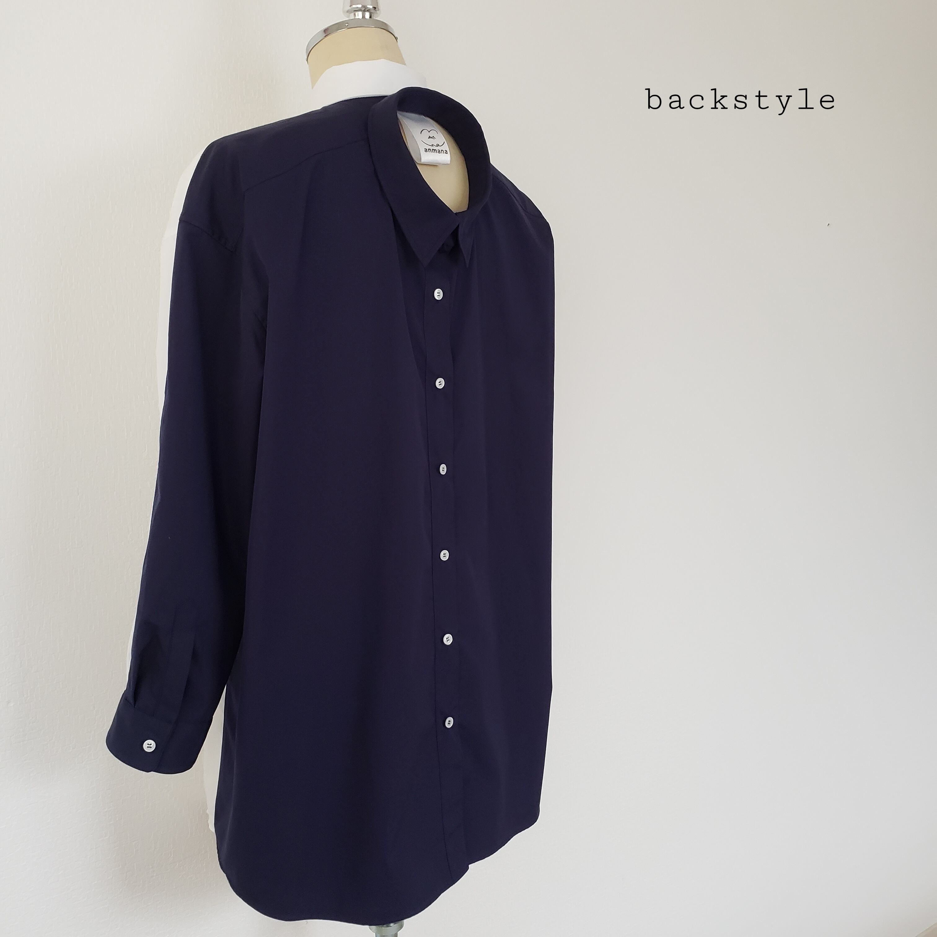 前からみるとスタンダードなシンプルシャツですが、後ろにシャツがもう1枚着いたような形になっています。