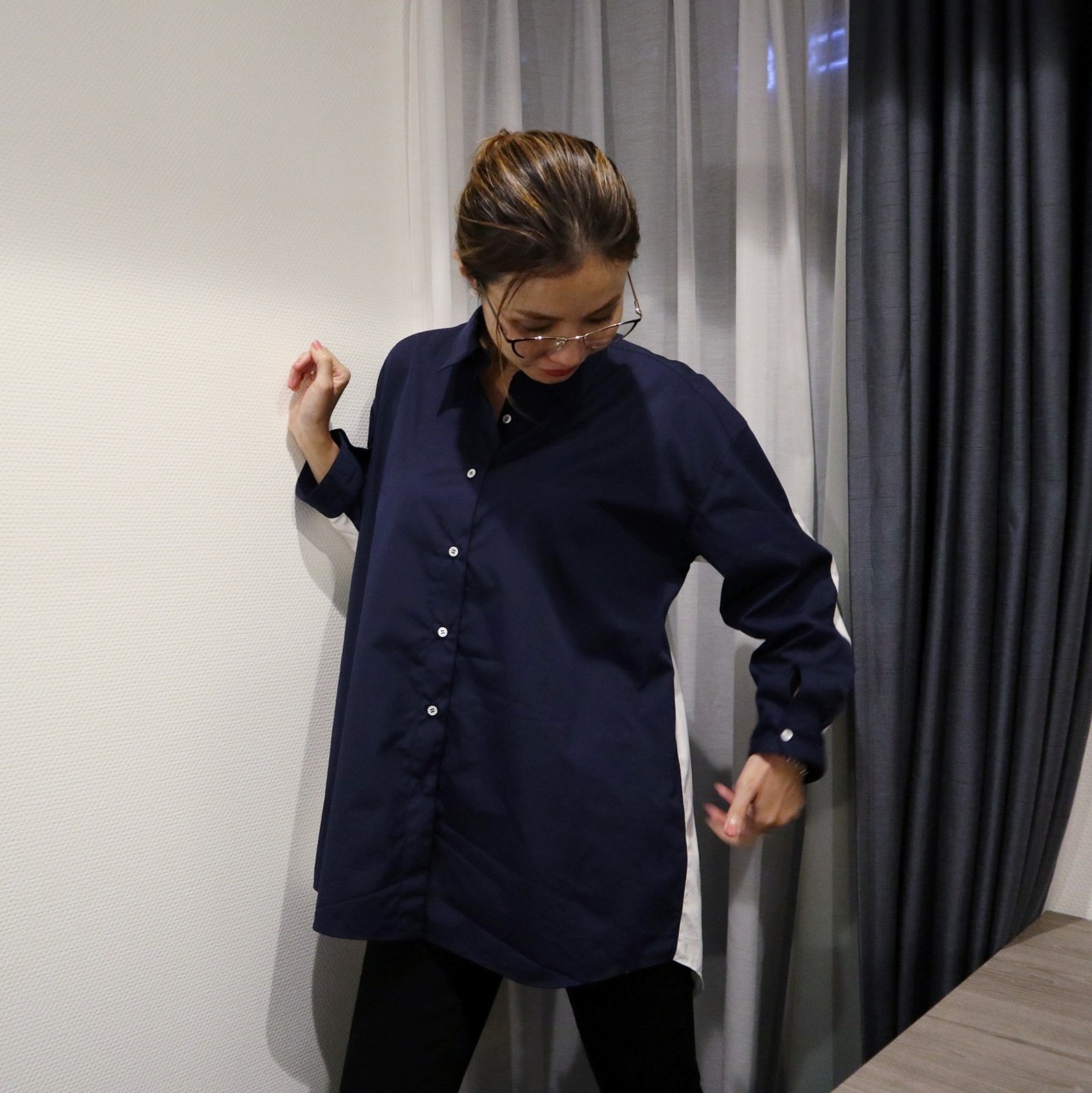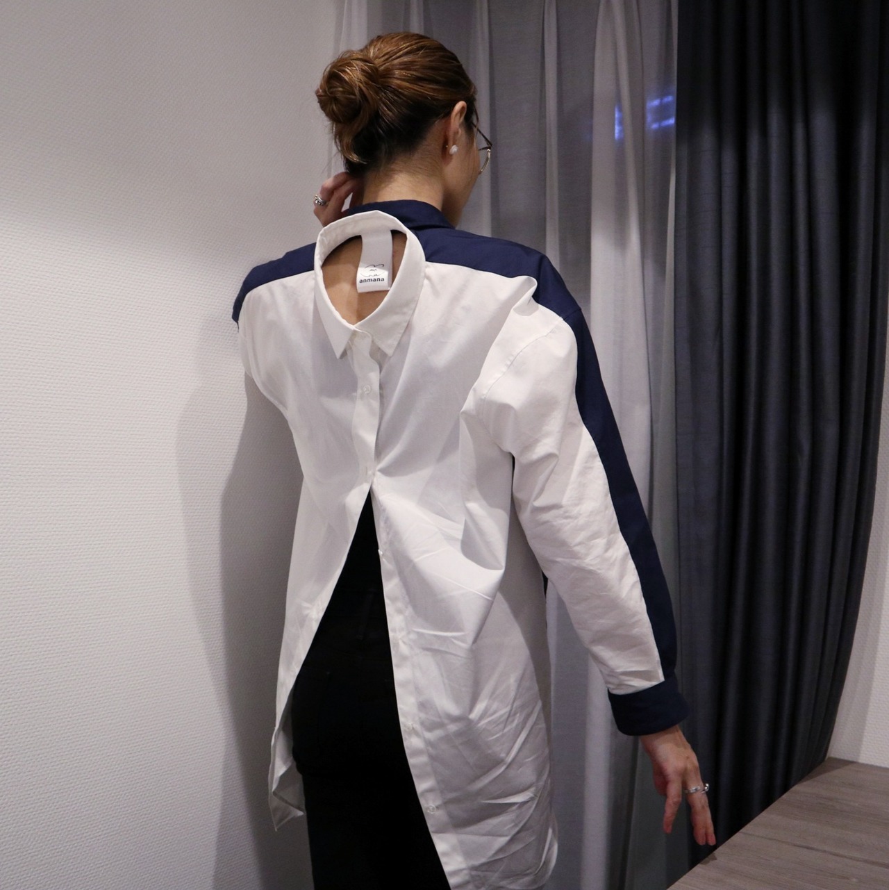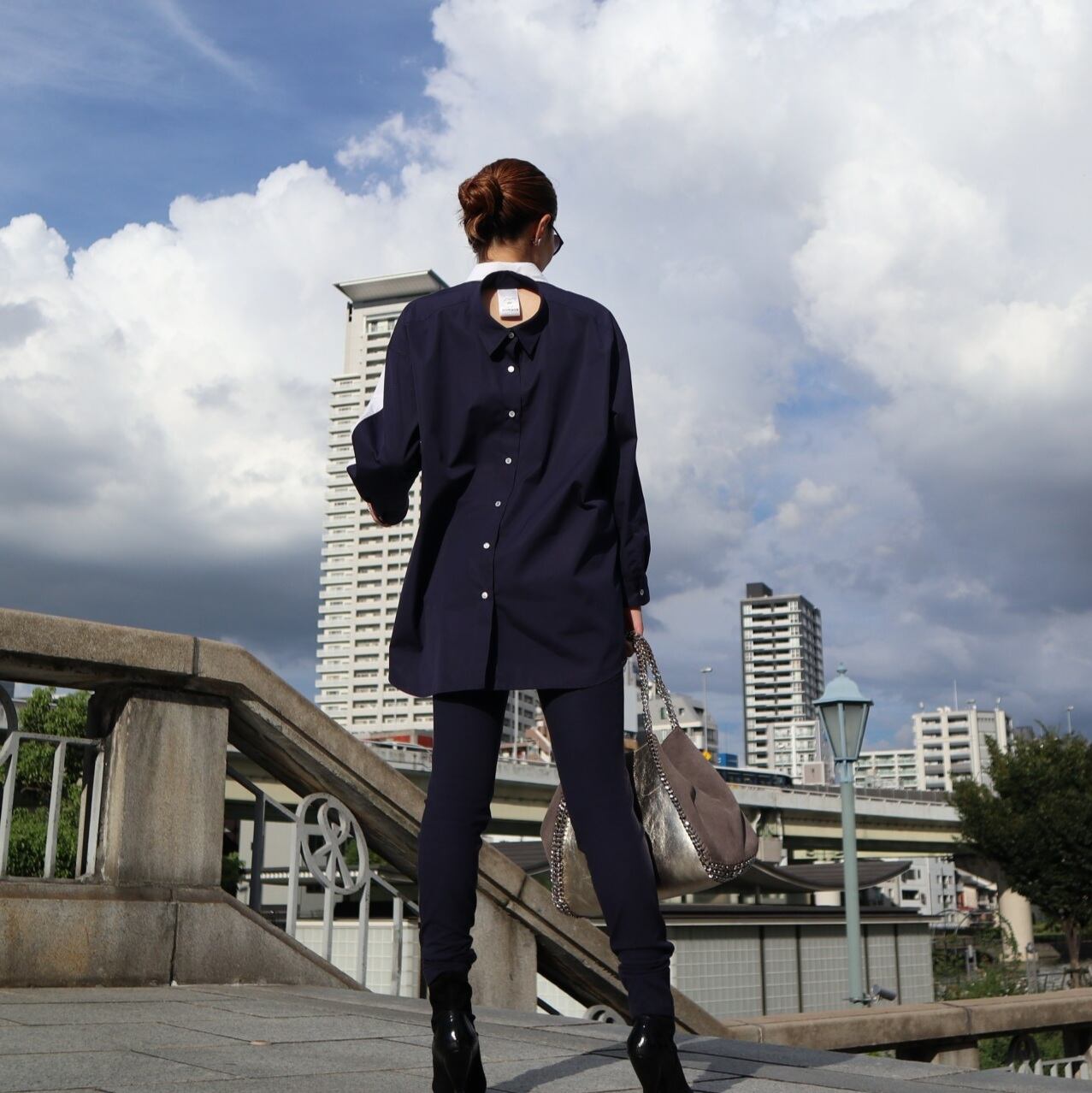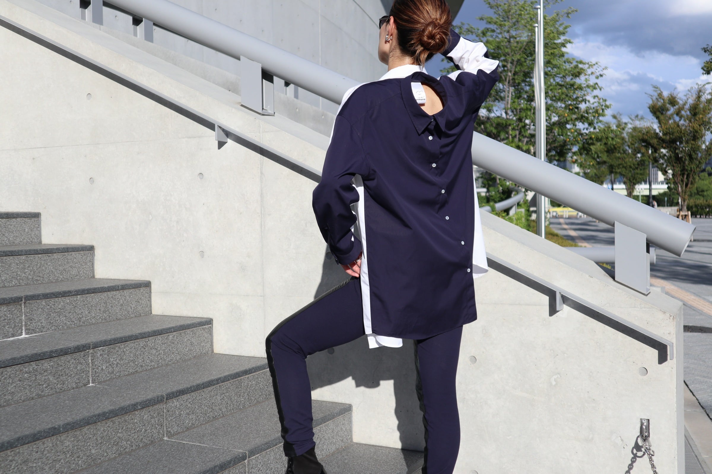 前からみるとスタンダードなシンプルシャツですが、後ろにシャツがもう1枚着いたような形になっています。