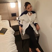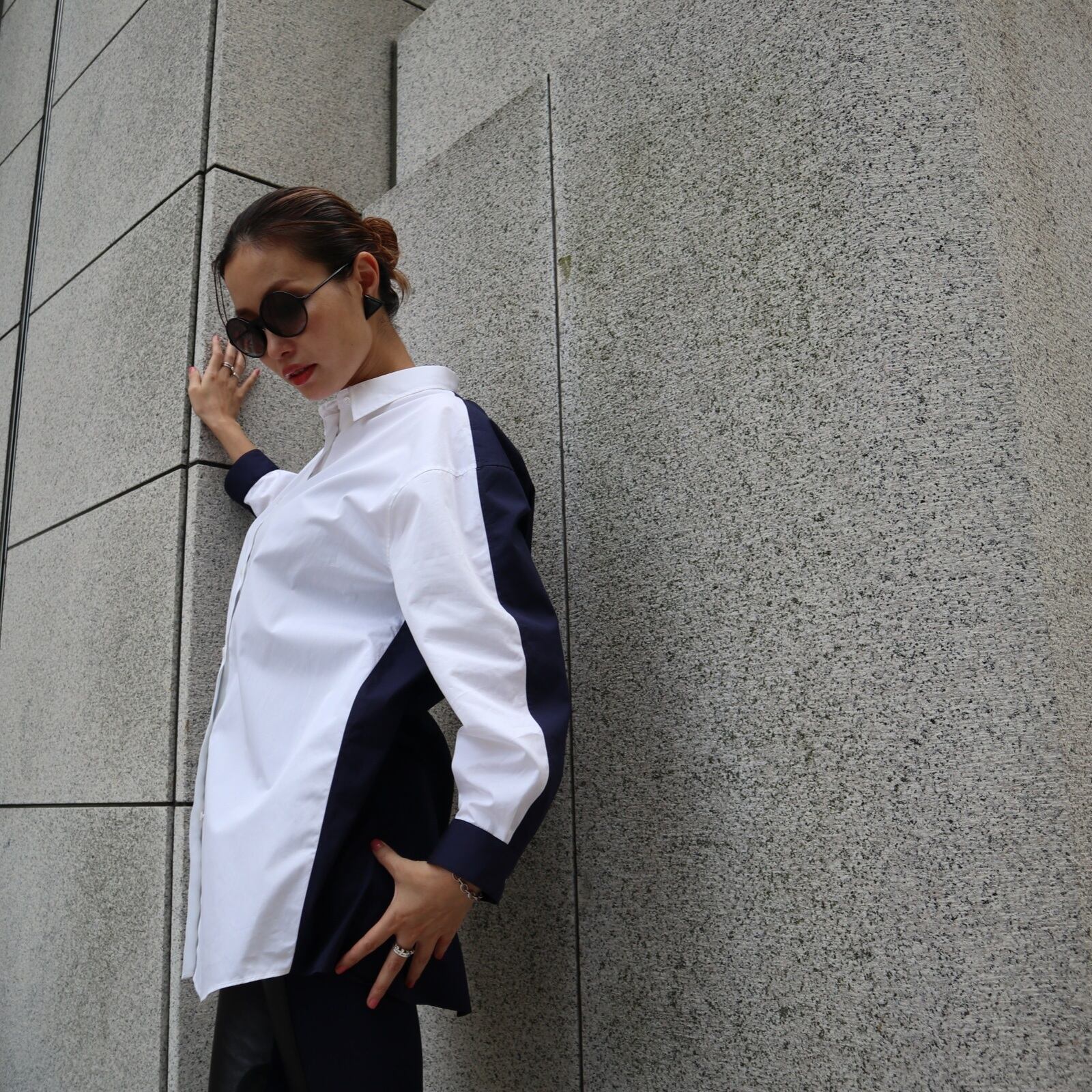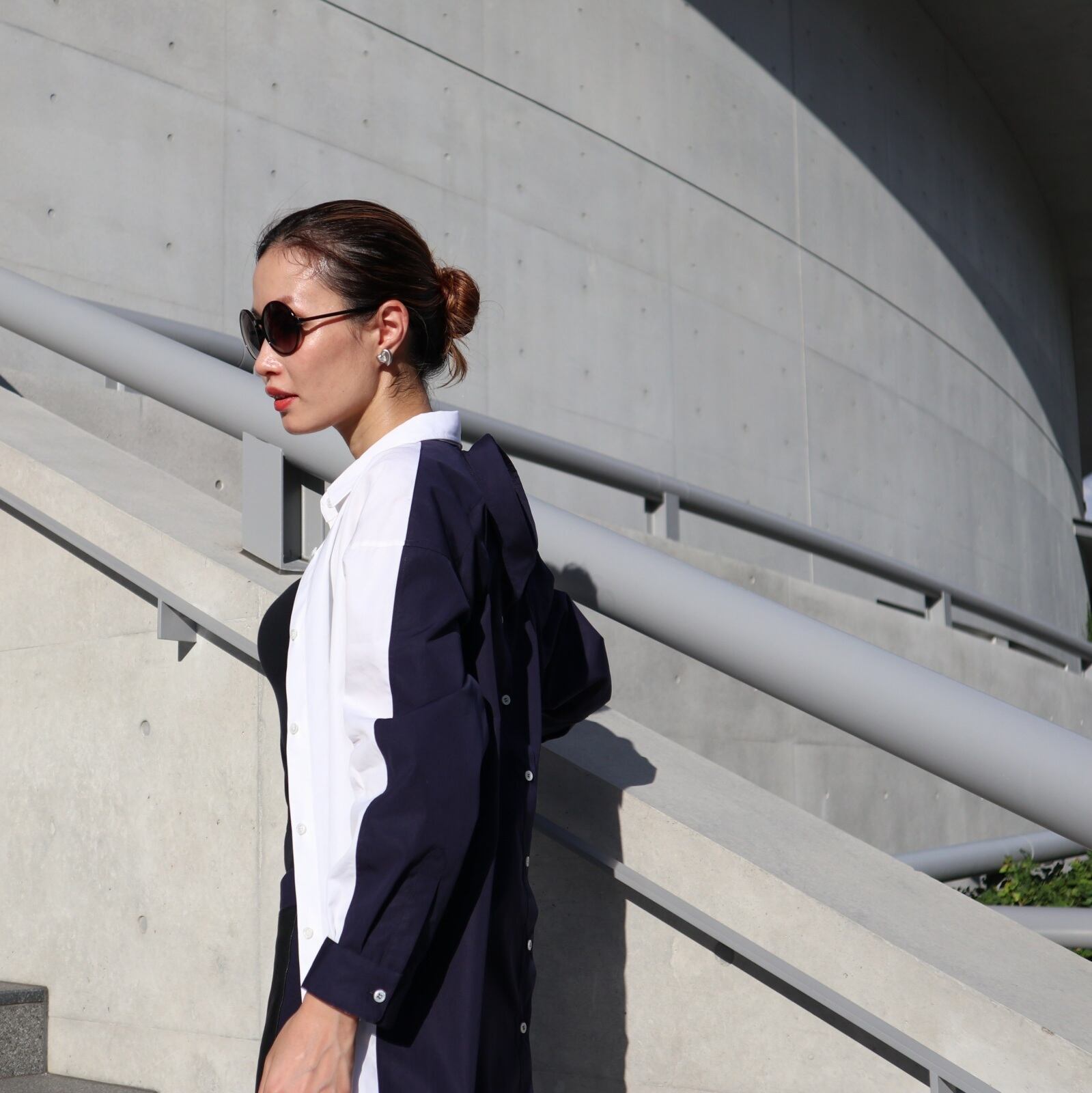 またネイビー×ホワイトカラーでは色の境界線で着痩せ効果が期待できます。