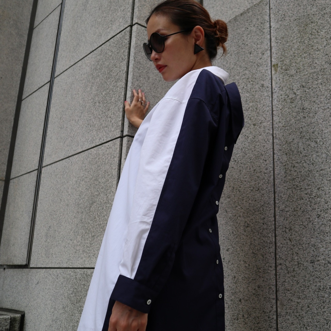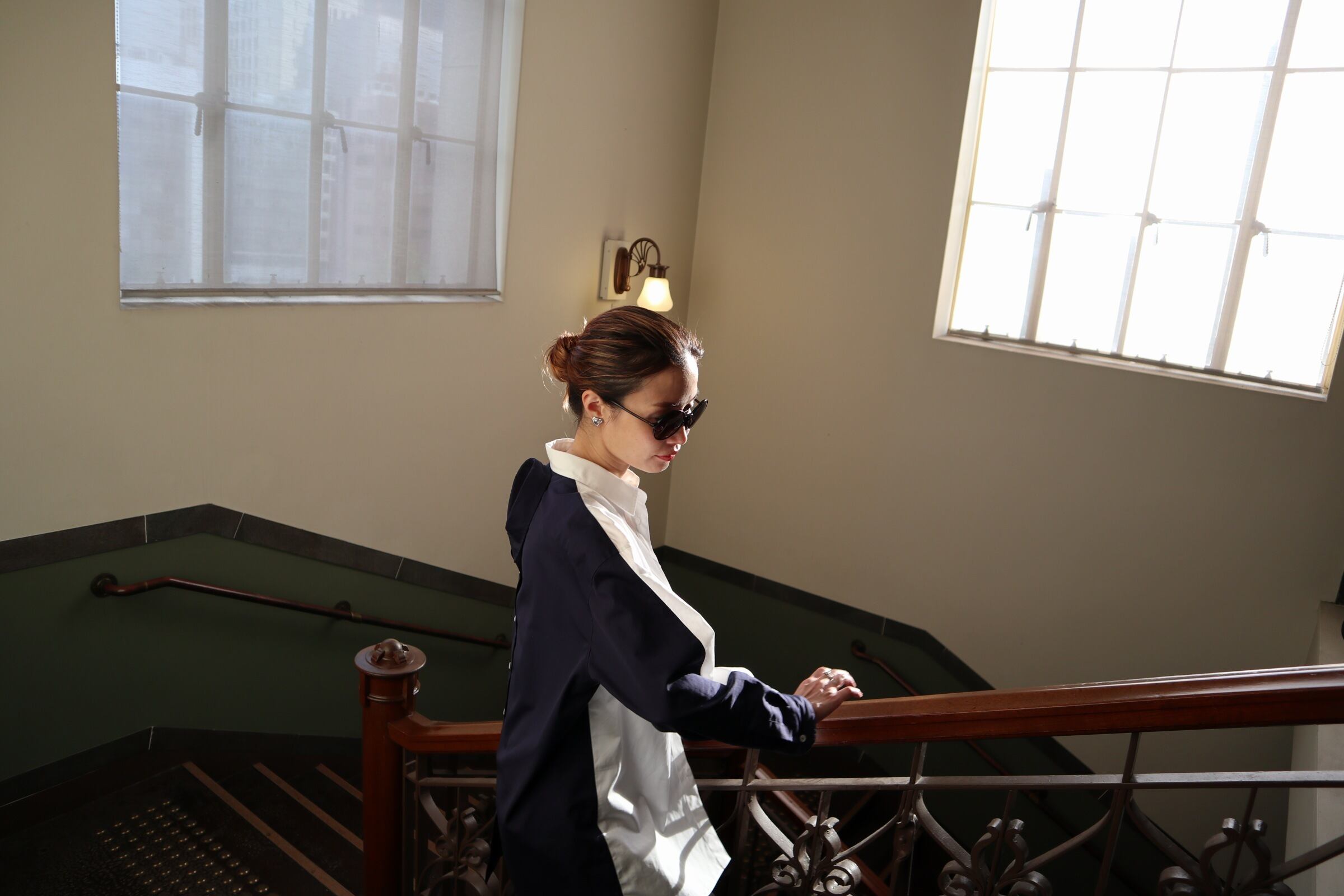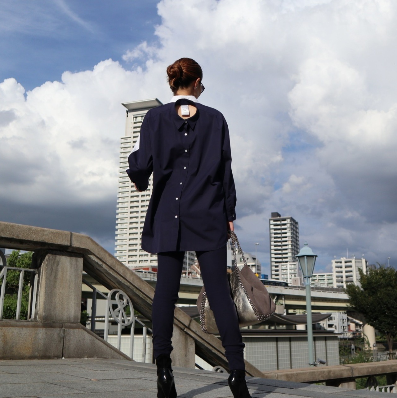 スタンダードスタイルではメンズライクな直線的なシルエットですが、前後逆に着用して頂くと背中に沿ったシルエットになり曲線が美しい対極なシルエットが楽しめます。