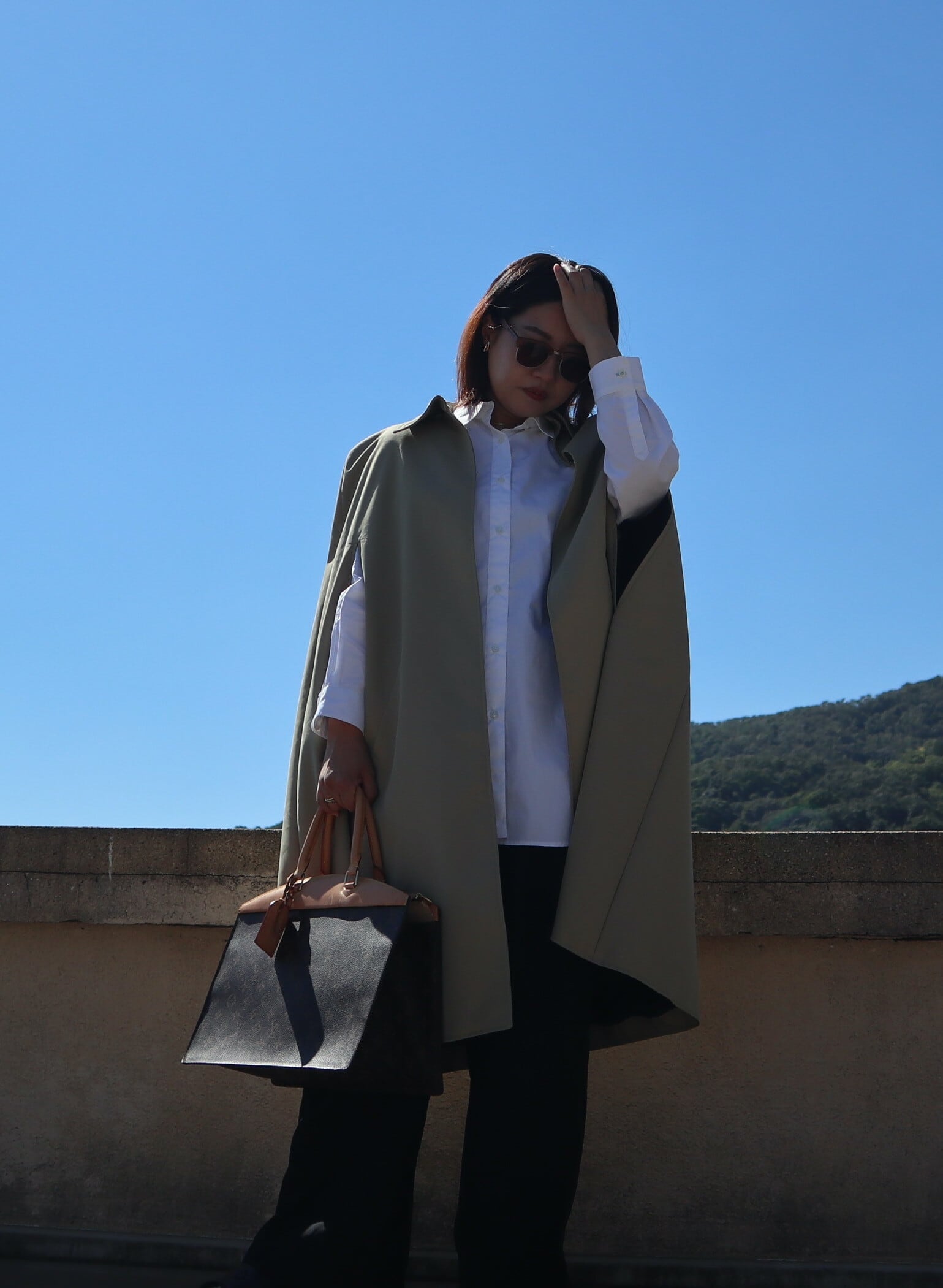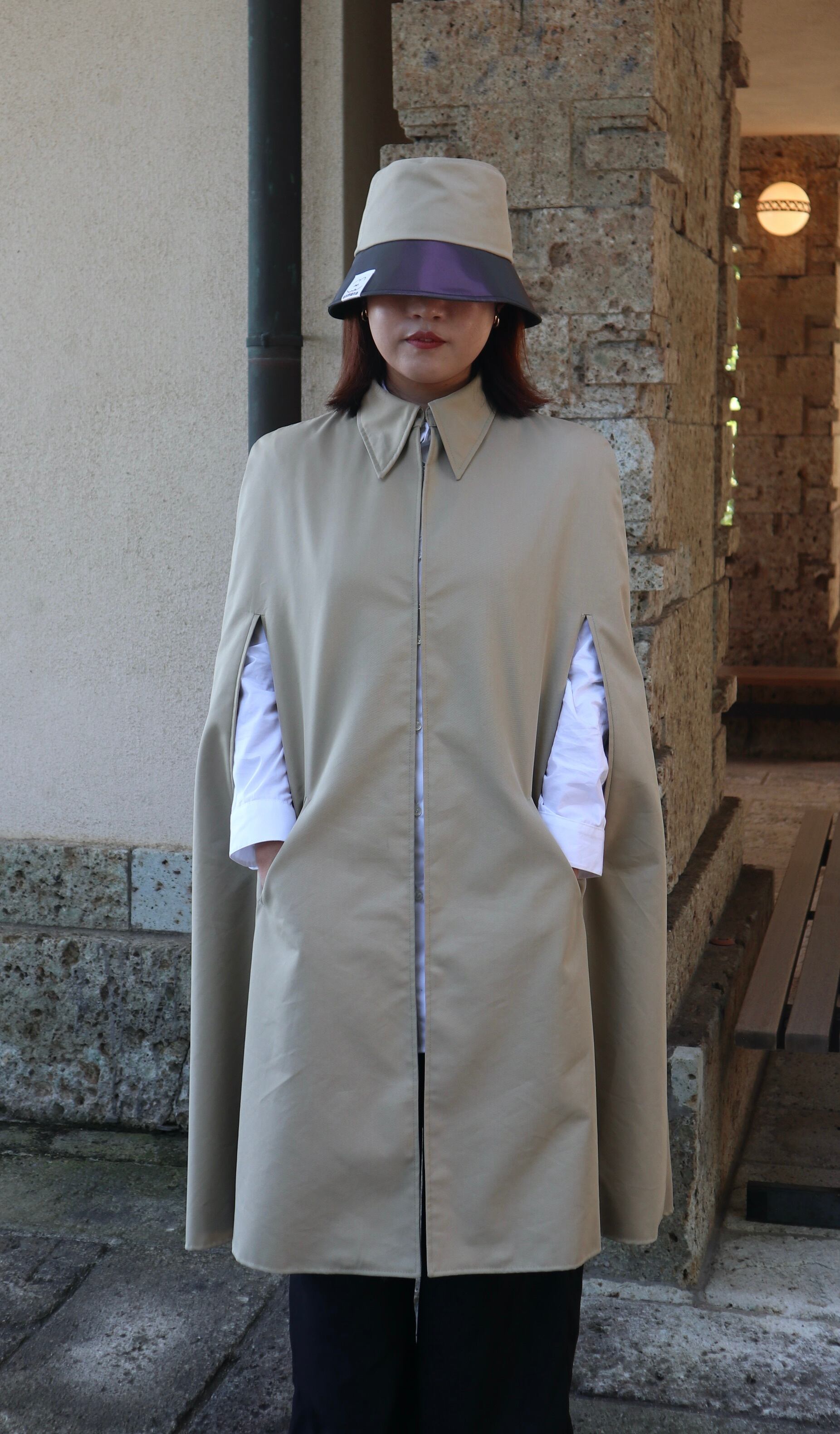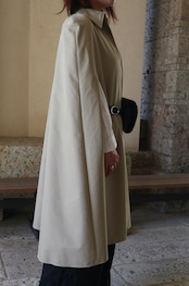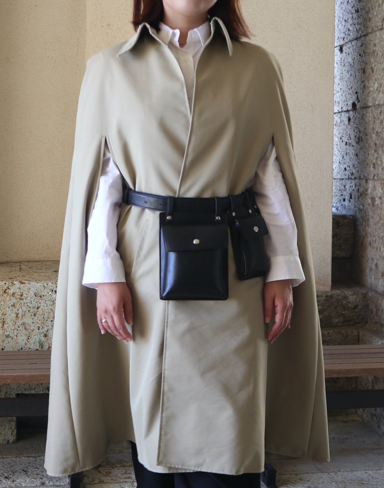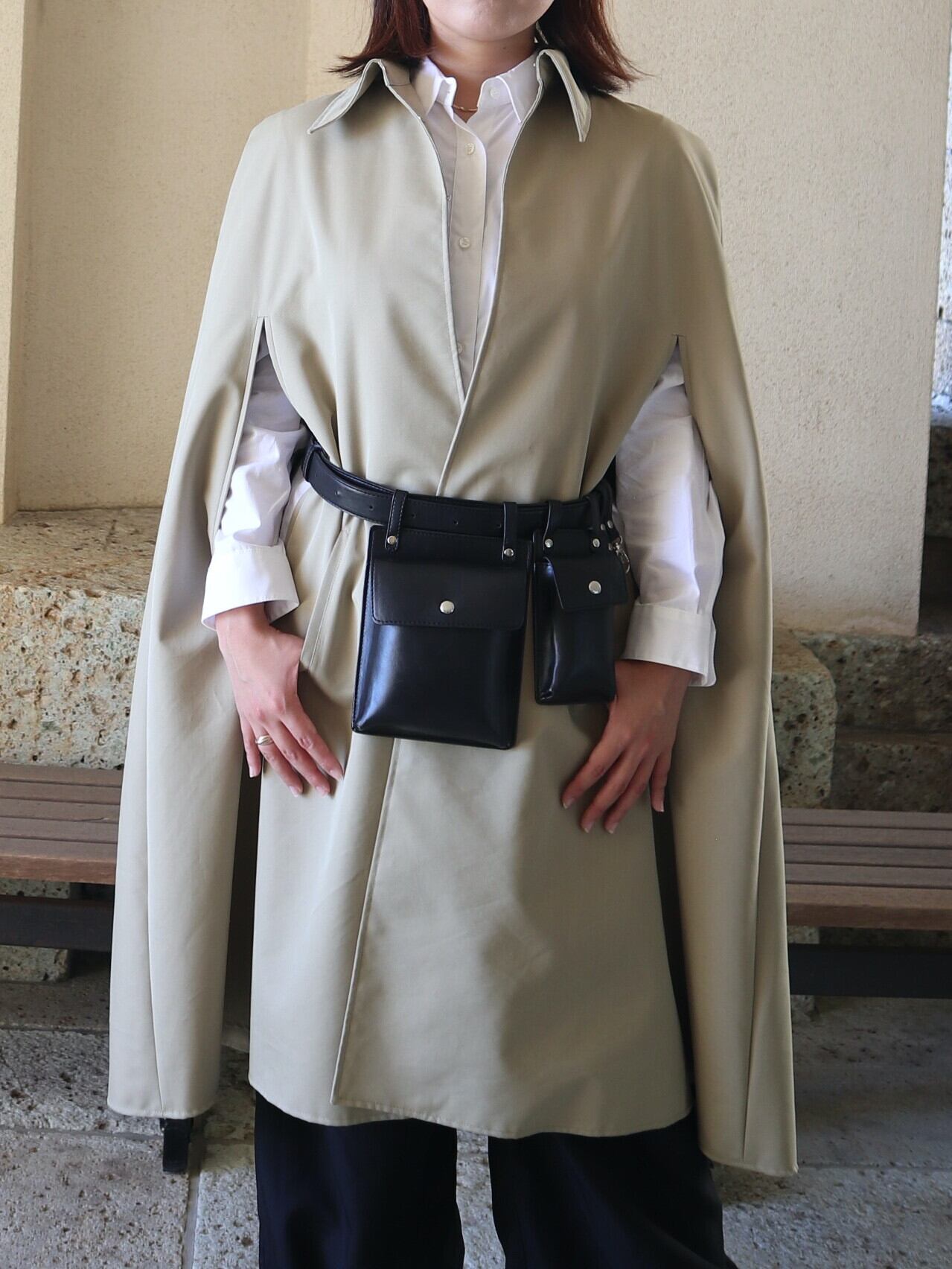 肩から掛けてマント風。ベルトバッグと組み合わせてモードに。