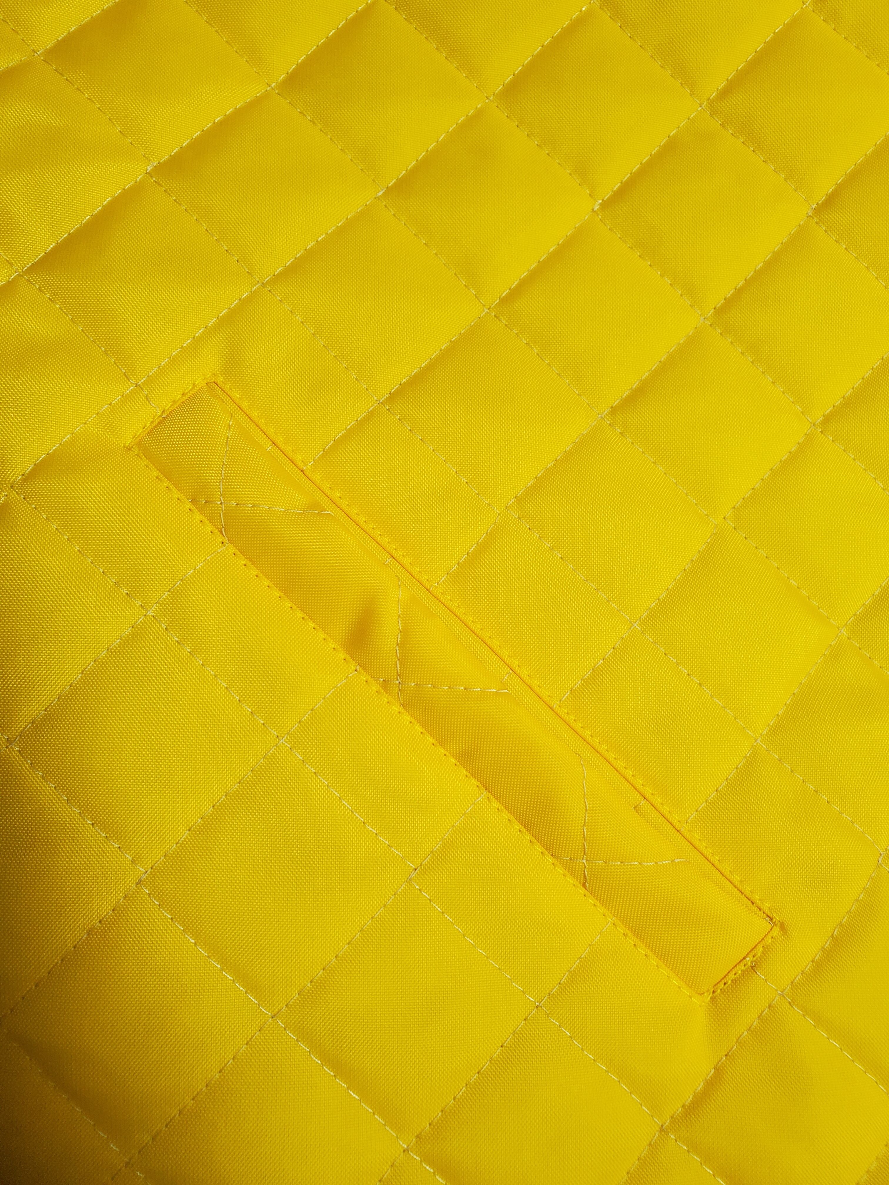 A4バッグの側面には玉縁ポケット、まるでベストを着ている様にみえるバッグ。