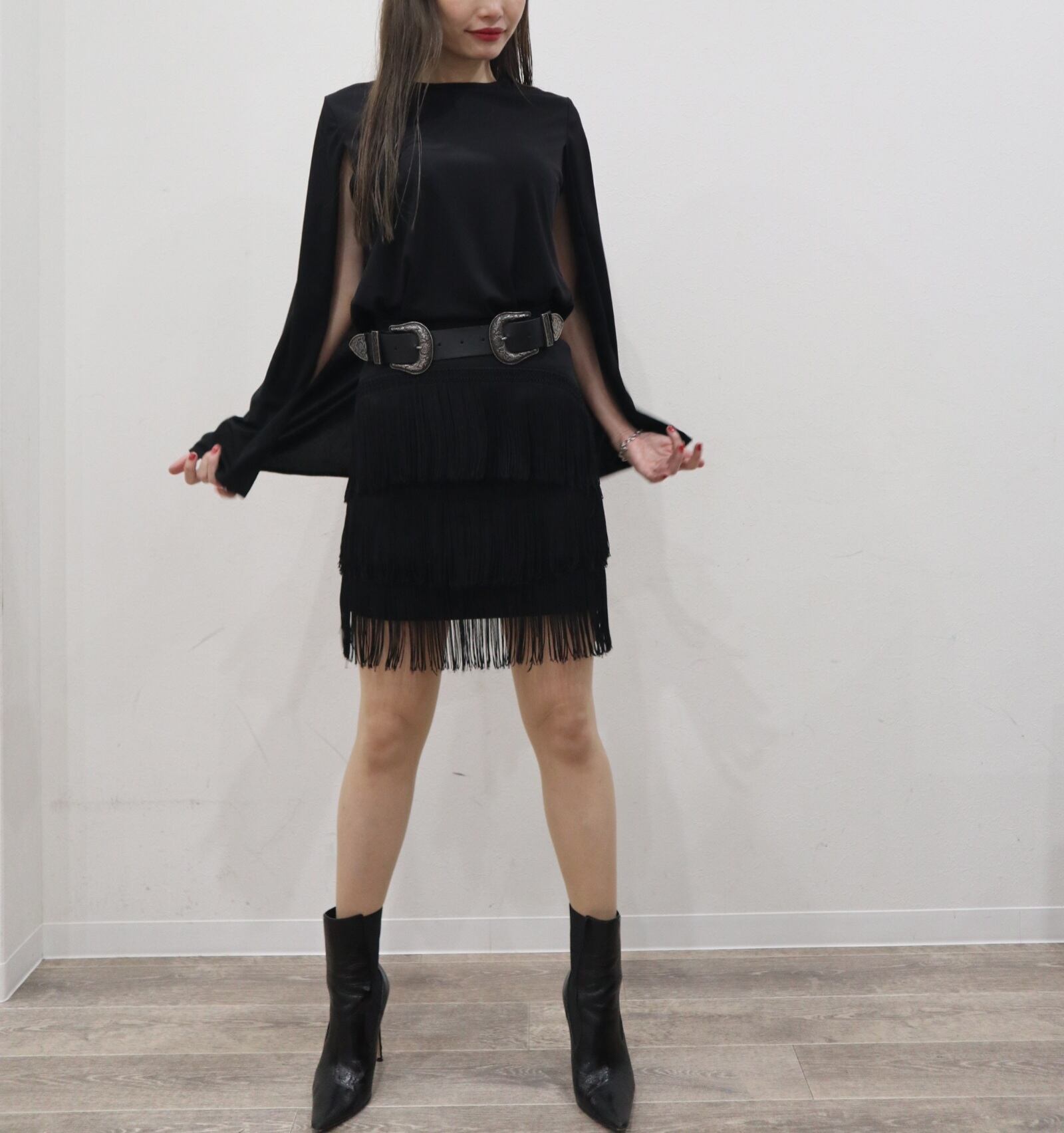 ひらっと揺れ動くケープが軽やかです。